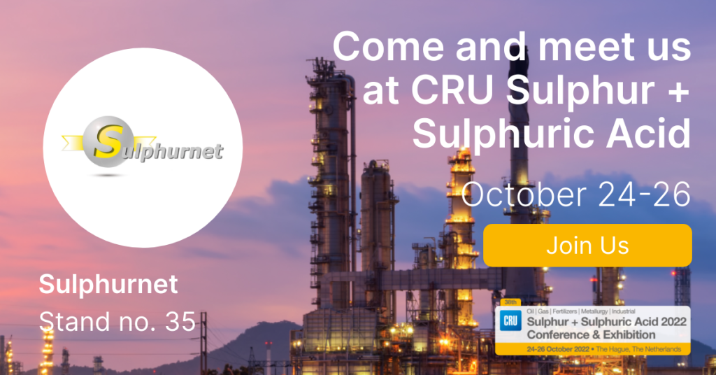 Sulphurnet will be attending the Sulphur + Sulphuric Acid 2022 Conference & Exhibition at the World Forum The Hague between 24 and 26 October. It will be a great pleasure to meet again in person.