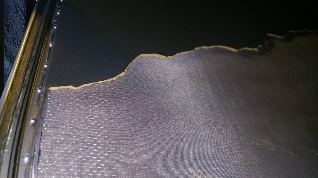 As you can imagine if this happens or the cake separation space is reduced too much, in the cleaning stage the cake will not drop easily, the cake has no space to move and will stick to the leaf, the cake that drops from the top will also accumulate on with the one already blocked in the bottom bridge creating a big block of stuck cake that has to be removed manually.